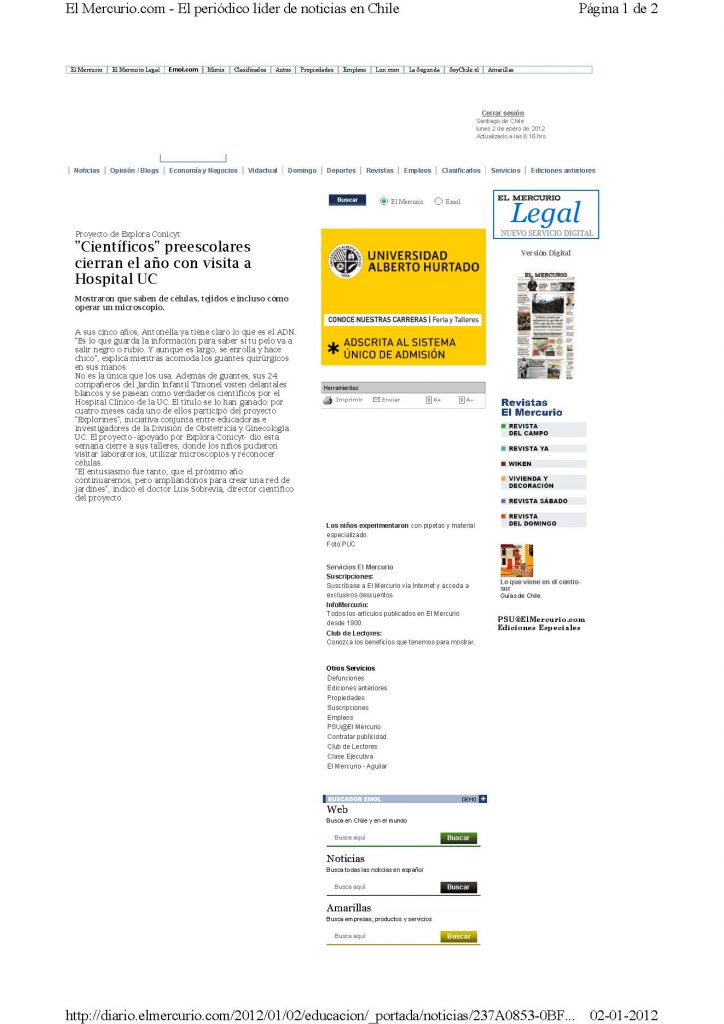 No es la única que los usa. Además de guantes, sus 24 compañeros del Jardín Infantil Timonel visten delantales blancos y se pasean como verdaderos científicos por el Hospital Clínico de la UC. El título se lo han ganado: por cuatro meses cada uno de ellos participó del proyecto